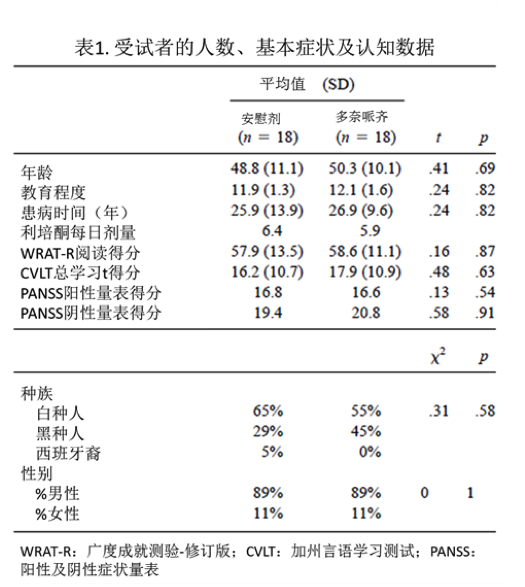 多奈哌齊與利培酮聯(lián)合治療精神分裂癥認(rèn)知障礙的雙盲安慰劑對(duì)照試驗(yàn)