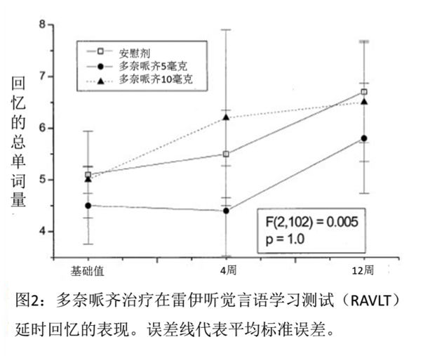 結(jié)果:與安慰劑相比,無(wú)論是5毫克還是10毫克劑量的多奈哌齊都未能對(duì)認(rèn)知產(chǎn)生任何程度上的顯著改善。