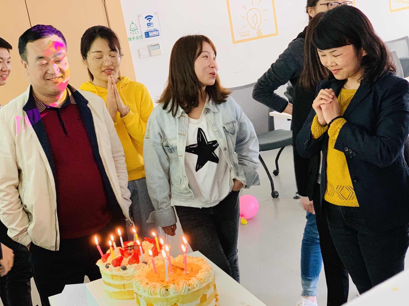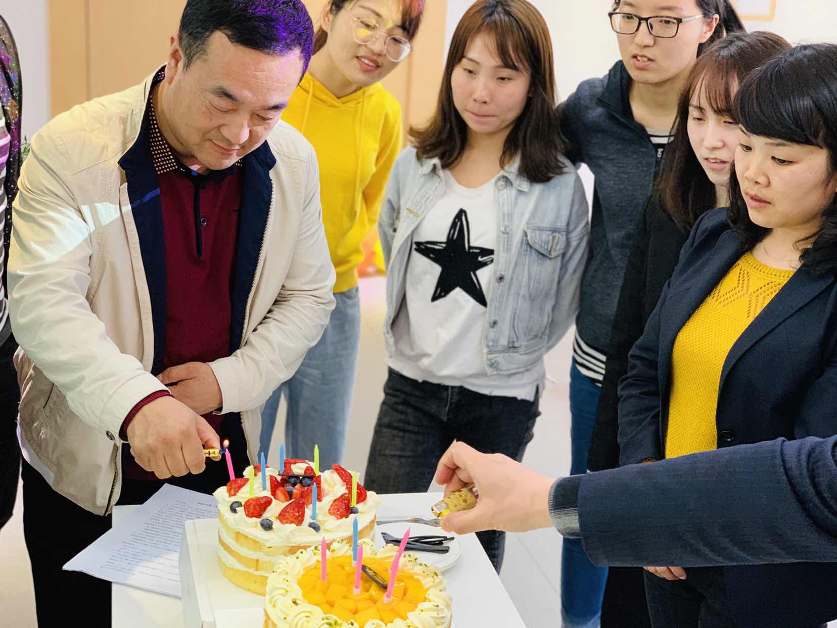行政人事部每季度都會為公司的壽星們共同舉辦生日會,每一個蛋糕象征著一個團(tuán)結(jié)的集體,每一支蠟燭象征著在集體中綻放的我們,我們因集體而精彩,集體因我們而自豪,就讓我們一起分享生日的喜悅,共同綻放生命的美麗。