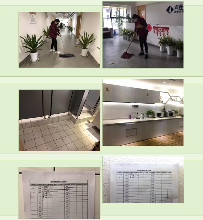 5. 保潔人員佩戴口罩對公共區(qū)域進行清潔消毒,尤其衛(wèi)生間、茶歇等重點區(qū)域,每日消毒兩次并登記。
