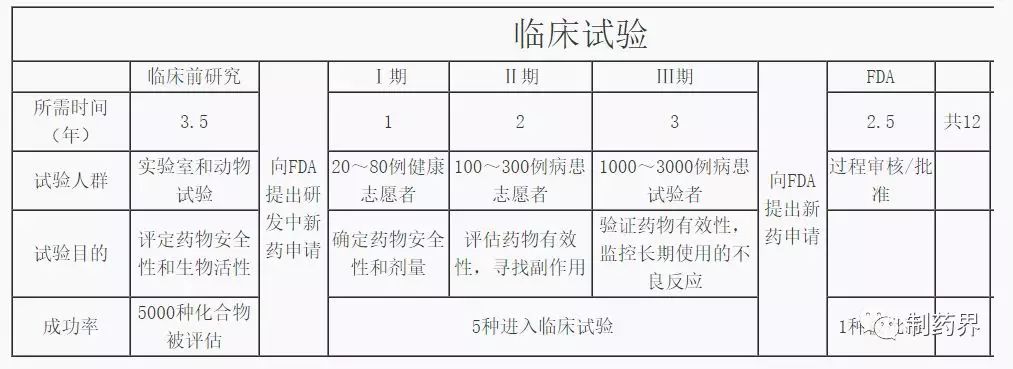 藥物從最初的實驗室研究到最終擺放到藥柜銷售平均需要花費12年的時間。進行臨床前試驗的5000種化合物中只有5種能進入到后續(xù)的臨床試驗,而僅其中的1種化合物可以得到最終的上市批準。